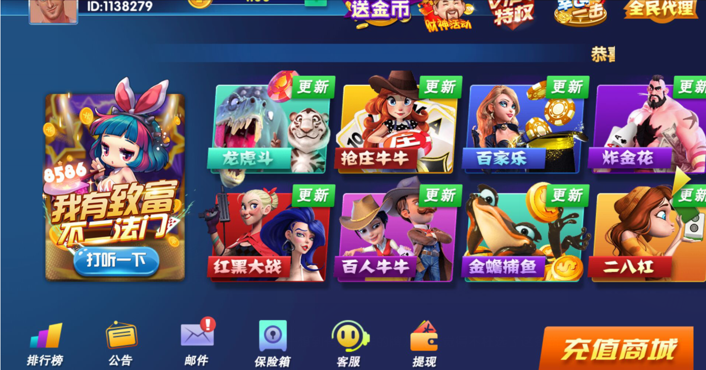4.目前提供了斗地主、捕鱼达人、德州扑克、长春麻将、红十、欢乐三张、欢乐五张、刨幺、智勇大坑、连连看、推倒胡等多款游戏