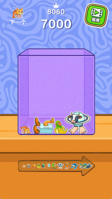 1、进入游戏后,你只需要点击,就会掉落不同形态的怪兽,砸到相同的就能消除。